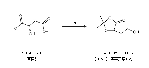 2.通过L-苹果酸合成(S)-5-(2-羟基乙基)-2,2-二甲基-1,3-二噁烷-4-酮,收率约90%;