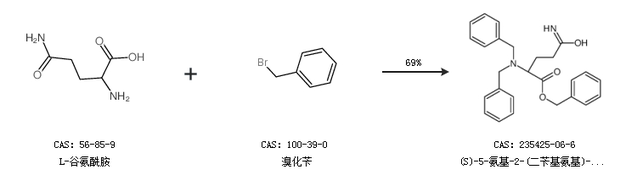 1.通过L-谷氨酰胺和溴化苄合成(S)-5-氨基-2-(二苄基氨基)-5-氧代戊酸苄酯,收率约69%;