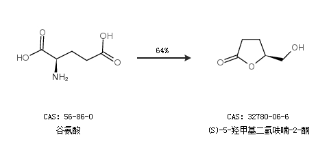 1.通过谷氨酸合成(S)-5-羟甲基二氢呋喃-2-酮,收率约64%;