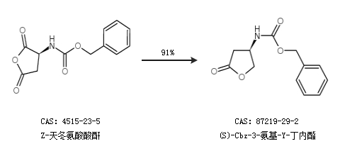 1.通过Z-天冬氨酸酸酐合成(S)-Cbz-3-氨基-Y-丁内酯,收率约91%;
