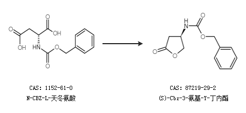 2.通过N-CBZ-L-天冬氨酸合成(S)-Cbz-3-氨基-Y-丁内酯