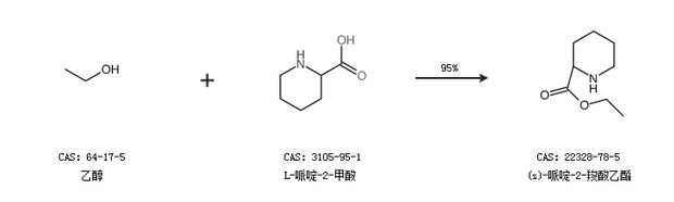 1.通过乙醇和L-哌啶-2-甲酸合成(s)-哌啶-2-羧酸乙酯,收率约95%;