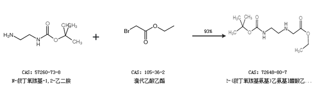 1.通过N-叔丁氧羰基-1,2-乙二胺和溴代乙酸乙酯合成[2-(叔丁氧羰基氨基)乙氨基]醋酸乙酯盐酸盐,收率约93%;