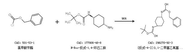 1.通过氯甲酸苄酯和N-Boc-反式-1,4-环己二胺合成[反式-4-[[(1,1-二甲基乙氧基)羰基]氨基]环己基]-氨基甲酸苯基甲酯,收率约96%;