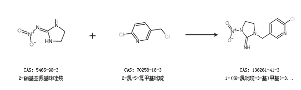 1.通过2-硝基亚氨基咪唑烷和2-氯-5-氯甲基吡啶合成1-((6-氯吡啶-3-基)甲基)-3-硝基咪唑烷-2-亚胺