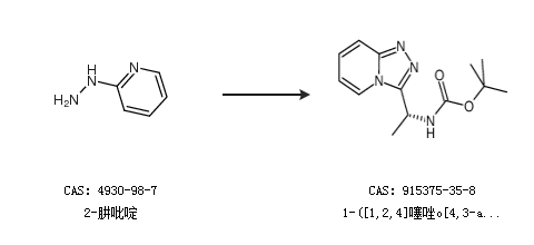 2.通过2-肼吡啶合成1-([1,2,4]噻唑o[4,3-a]吡啶-3-基)乙基氨基甲酸-(R)-叔丁酯