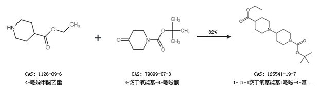 1.通过4-哌啶甲酸乙酯和N-叔丁氧羰基-4-哌啶酮合成1-(1-(叔丁氧基羰基)哌啶-4-基)-4-乙基哌啶-4-羧酸,收率约82%;