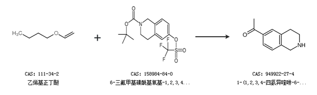 1.通过乙烯基正丁醚和6-三氟甲基磺酰基氧基-1,2,3,4-四氢-异喹啉-2-羧酸叔丁酯合成1-(1,2,3,4-四氢异喹啉-6-基)乙酮
