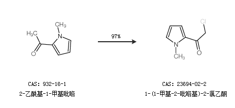 2.通过2-乙酰基-1-甲基吡咯合成1-(1-甲基-2-吡咯基)-2-氯乙酮,收率约97%;