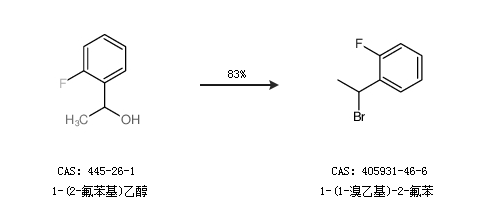 1.通过1-(2-氟苯基)乙醇合成1-(1-溴乙基)-2-氟苯,收率约83%;