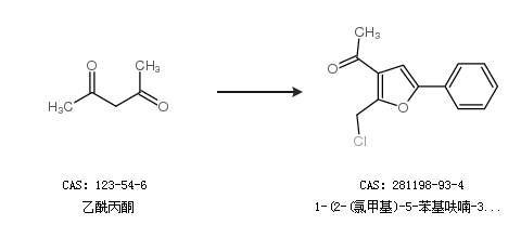 中文名称 1-(2-(氯甲基)-5-苯基呋喃-3-基)乙酮