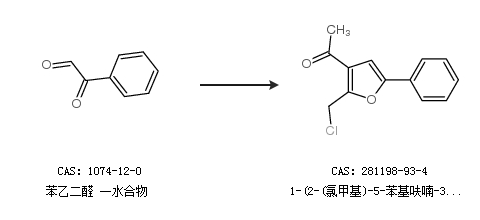 1.通过苯乙二醛 一水合物合成1-(2-(氯甲基)-5-苯基呋喃-3-基)乙酮