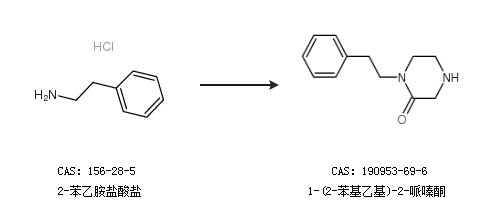 1.通过2-苯乙胺盐酸盐合成1-(2-苯基乙基)-2-哌嗪酮