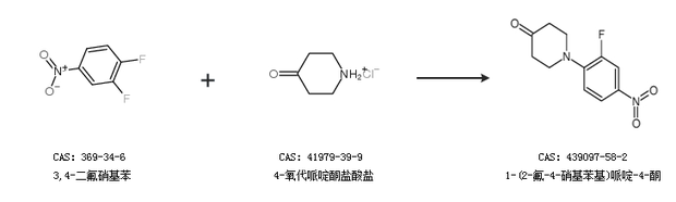 1.通过3,4-二氟硝基苯和4-氧代哌啶酮盐酸盐合成1-(2-氟-4-硝基苯基)哌啶-4-酮