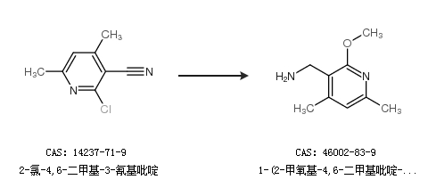 2.通过2-氯-4,6-二甲基-3-氰基吡啶合成1-(2-甲氧基-4,6-二甲基吡啶-3-基)甲胺