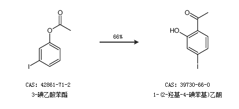 1.通过3-碘乙酸苯酯合成1-(2-羟基-4-碘苯基)乙酮,收率约66%;
