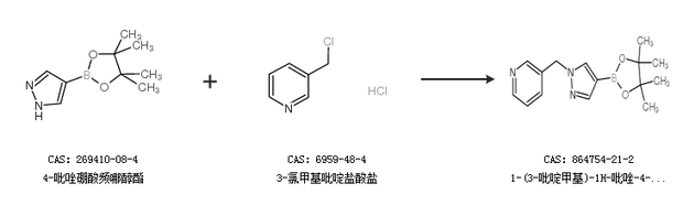 1.通过4-吡唑硼酸频哪醇酯和3-氯甲基吡啶盐酸盐合成1-(3-吡啶甲基)-1H-吡唑-4-硼酸频哪醇酯