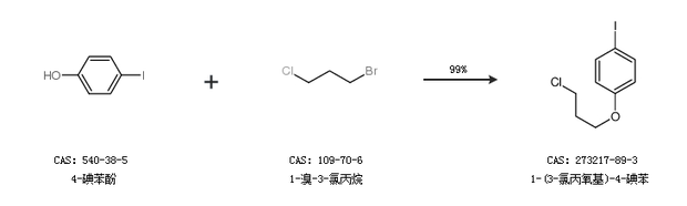 1.通过4-碘苯酚和1-溴-3-氯丙烷合成1-(3-氯丙氧基)-4-碘苯,收率约99%;