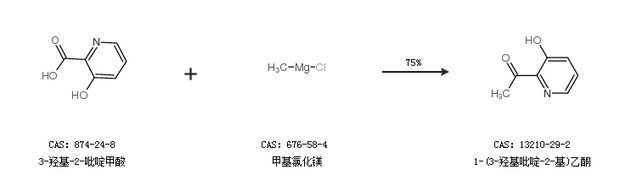 2.通过3-羟基-2-吡啶甲酸和甲基氯化镁合成1-(3-羟基吡啶-2-基)乙酮,收率约75%;