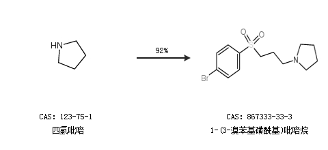 1.通过四氢吡咯合成1-(3-溴苯基磺酰基)吡咯烷,收率约92%;
