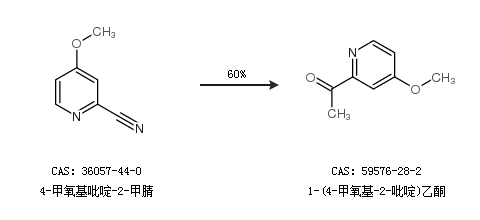 2.通过4-甲氧基吡啶-2-甲腈合成1-(4-甲氧基-2-吡啶)乙酮,收率约60%;
