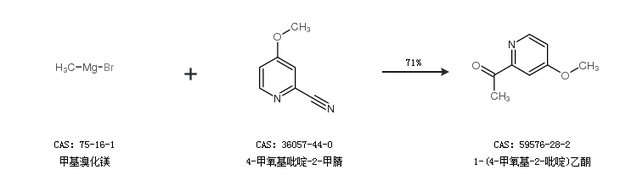 1.通过甲基溴化镁和4-甲氧基吡啶-2-甲腈合成1-(4-甲氧基-2-吡啶)乙酮,收率约71%;