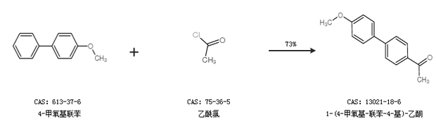 2.通过4-甲氧基联苯和乙酰氯合成1-(4-甲氧基-联苯-4-基)-乙酮,收率约73%;