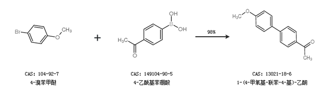 1.通过4-溴苯甲醚和4-乙酰基苯硼酸合成1-(4-甲氧基-联苯-4-基)-乙酮,收率约98%;