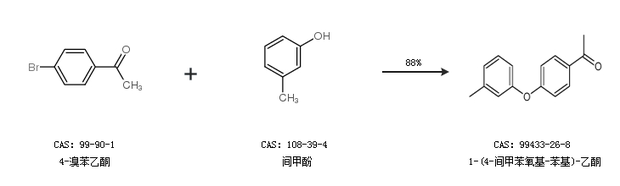 1.通过4-溴苯乙酮和间甲酚合成1-(4-间甲苯氧基-苯基)-乙酮,收率约88%;