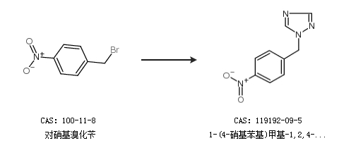 英文别名 1-(4-Nitrobenzyl)-1H-1,2,4-triazole;1-(p-nitrobenzyl)-1,2,4-triazole;1-p-Bitrobenzyl-1,2,4-triazole;1-(4-nitrobenzyl)-1,2,4-triazole;1-(4-nitrobenzyl)-1H-1,2,4-triazole;1-(4-Nitrophenyl)methyl-1,2,4-triazole;1-(1,2,4-triazol-1-ylmethyl)-4-nitrobenzene;1H-1,2,4-Triazole,1-[(4-nitrophenyl)methyl];1-[(4-Nitrophenyl)methyl]-1H-1,2,4-triazole;(1H-1,2,4-triazol-1-ylmethyl)-4-nitrobenzene;