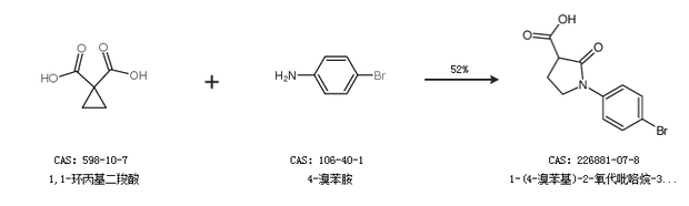 1.通过1,1-环丙基二羧酸和4-溴苯胺合成1-(4-溴苯基)-2-氧代吡咯烷-3-羧酸,收率约52%;
