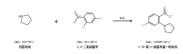 2.通过四氢吡咯和2,4-二氯硝基苯合成1-(5-氯-2-硝基苯基)-吡咯烷,收率约91%;