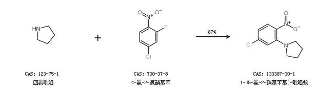 1.通过四氢吡咯和4-氯-2-氟硝基苯合成1-(5-氯-2-硝基苯基)-吡咯烷,收率约87%;