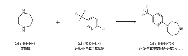 1.通过高哌嗪和2-氯-5-三氟甲基吡啶合成1-(5-三氟甲基吡啶-2-基)-1,4-二簪烷