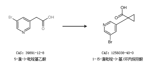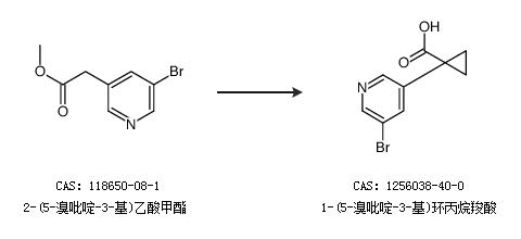 2.通过5-溴-3-吡啶基乙酸合成1-(5-溴吡啶-3-基)环丙烷羧酸
