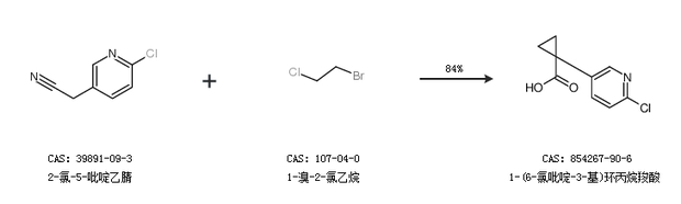 1.通过2-氯-5-吡啶乙腈和1-溴-2-氯乙烷合成1-(6-氯吡啶-3-基)环丙烷羧酸,收率约84%;