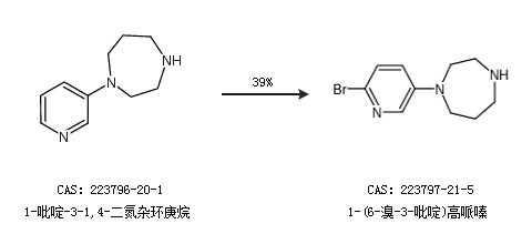 1.通过1-吡啶-3-1,4-二氮杂环庚烷合成1-(6-溴-3-吡啶)高哌嗪,收率约39%;