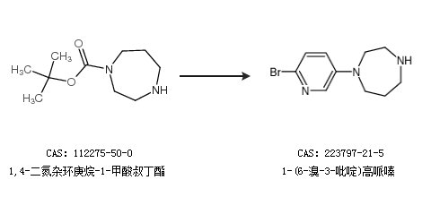 2.通过1,4-二氮杂环庚烷-1-甲酸叔丁酯合成1-(6-溴-3-吡啶)高哌嗪