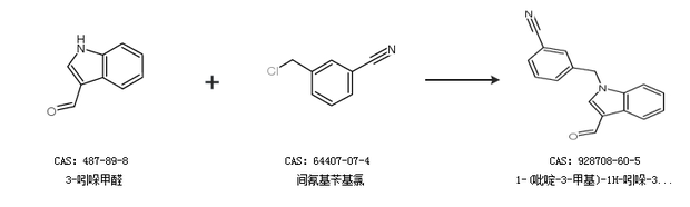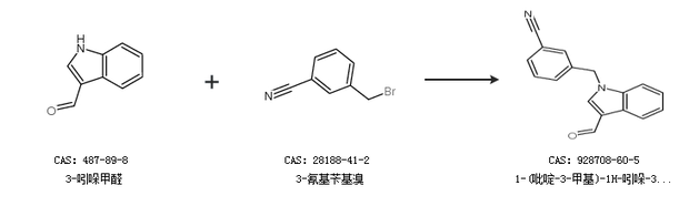 1.通过3-吲哚甲醛和3-氰基苄基溴合成1-(吡啶-3-甲基)-1H-吲哚-3-甲醛