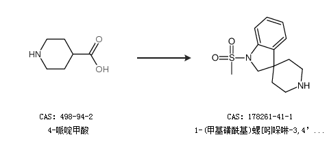 2.通过1-Cbz-4-哌啶甲醛合成1-(甲基磺酰基)螺[吲哚啉-3,4’-哌啶]