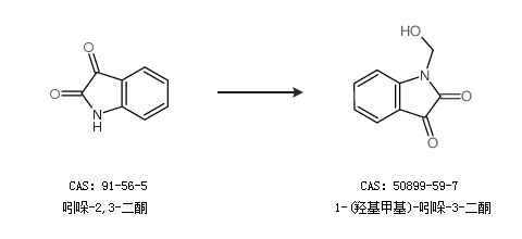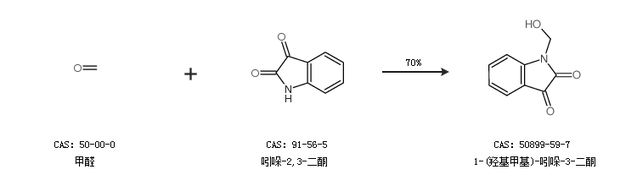 1.通过甲醛和吲哚-2,3-二酮合成1-(羟基甲基)-吲哚-3-二酮,收率约70%;