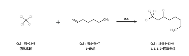 2.通过四氯化碳和1-庚烯合成1,1,1,3-四氯辛烷,收率约45%;