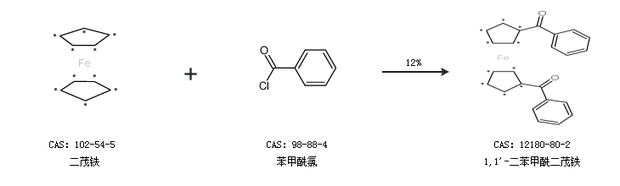 1.通过二茂铁和苯甲酰氯合成1,1''-二苯甲酰二茂铁,收率约99%;