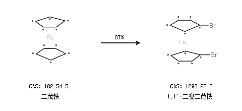 1.通过二茂铁合成1,1''-二溴二茂铁,收率约87%;