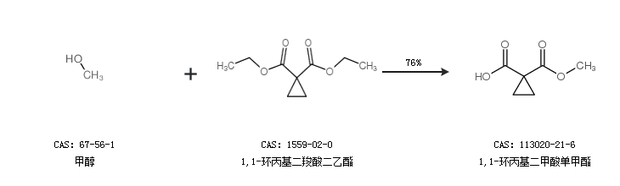 2.通过甲醇和1,1-环丙基二羧酸二乙酯合成1,1-环丙基二甲酸单甲酯,收率约76%;