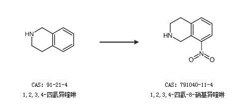 1.通过1,2,3,4-四氢异喹啉合成1,2,3,4-四氢-8-硝基异喹啉