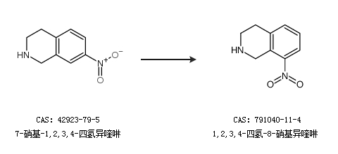 2.通过7-硝基-1,2,3,4-四氢异喹啉合成1,2,3,4-四氢-8-硝基异喹啉
