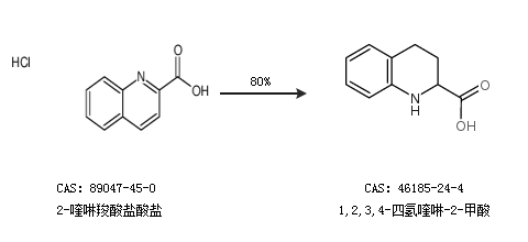 2.通过2-喹啉羧酸盐酸盐合成1,2,3,4-四氢喹啉-2-甲酸,收率约80%;