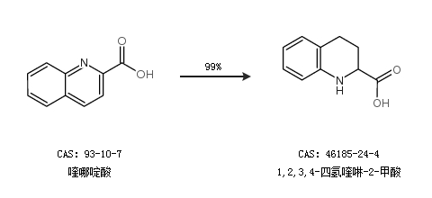 1.通过喹哪啶酸合成1,2,3,4-四氢喹啉-2-甲酸,收率约99%;