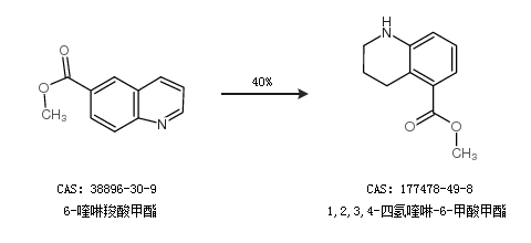 2.通过6-喹啉羧酸甲酯合成1,2,3,4-四氢喹啉-6-甲酸甲酯,收率约40%;